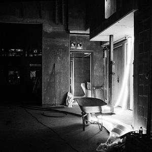 The remnants of a day's work. This intricate construction site with beautifully simple lighting was found after a long day exploring the back alleys of Vancouver's Chinatown.